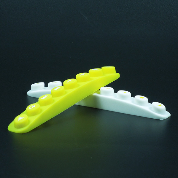 此款硅膠按鍵采用淡黃色色母調(diào)制,黃色色母加上半透明的硅膠原料配合硫化劑的添加是通過(guò)在里面加入對(duì)應(yīng)顏色比例的顏色色膏混煉,得到相應(yīng)需要的顏色,可自定義顏色定制加工生產(chǎn),原材料采用食品級(jí)環(huán)保硅膠、質(zhì)地柔軟,可塑性強(qiáng)。低碳環(huán)保,無(wú)毒無(wú)味,柔軟、防滑、防震、防滲水、隔熱、不易老化、不褪色、易清洗。
